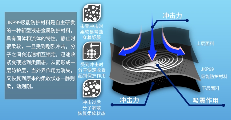 JKP99柔性仿生吸能防護材料運用廣泛,目前應用于公司康復理療、運動防護等系列產(chǎn)品上。