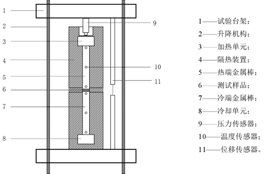 核心指標(biāo)熱阻抗和導(dǎo)熱系數(shù)的測(cè)定目前尚無(wú)專用的標(biāo)準(zhǔn)方法。當(dāng)前,業(yè)界通常參照ASTM D5470《熱導(dǎo)性電絕緣材料熱傳輸特性的標(biāo)準(zhǔn)試驗(yàn)方法》來(lái)進(jìn)行熱阻抗和導(dǎo)熱系數(shù)的測(cè)定,但鎵基液態(tài)金屬熱界面材料大多并非電絕緣材料,并不在該標(biāo)準(zhǔn)適用范圍內(nèi);而且該方法測(cè)量導(dǎo)熱系數(shù)時(shí)操作繁瑣,精密度不足;對(duì)膏狀和液態(tài)易流動(dòng)變形樣品的熱阻抗測(cè)定條件與實(shí)際工況條件一致性不足。除了樣品自身的性能外,熱阻抗還與測(cè)試設(shè)備的狀況、特別是測(cè)試頭端面的光潔度、平面度相關(guān),故國(guó)內(nèi)外不同廠商根據(jù)ASTM D5470制造的導(dǎo)熱儀水平參差不齊,實(shí)驗(yàn)室間再現(xiàn)性差,這也導(dǎo)致某些市售的產(chǎn)品熱阻抗嚴(yán)重失真。本標(biāo)準(zhǔn)規(guī)定了熱阻抗的測(cè)量方法,明確了對(duì)如圖5所示的熱阻抗測(cè)量裝置的測(cè)試頭端面光潔度、平面度要求,規(guī)定測(cè)量厚度的位移傳感器精度。相比于ASTM D5470,測(cè)試頭表面粗糙度要求由0.4 μm提高到0.1 μm,平面度要求由5 μm提高到3 μm。