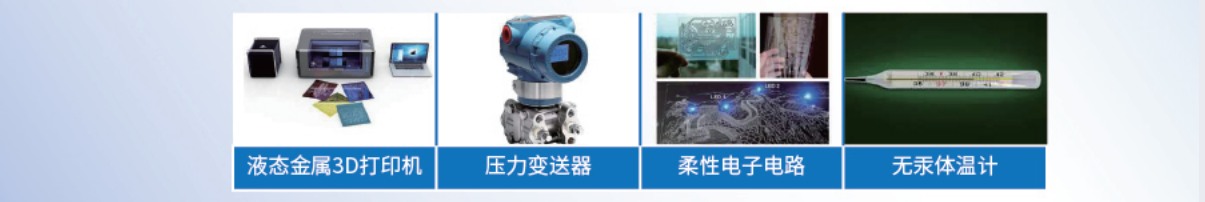 液態(tài)金屬合金功能材料可根據(jù)不同應(yīng)用場景對熔點、流動性、粘附性、電導(dǎo)率、熱導(dǎo)率等技術(shù)性能做調(diào)整。